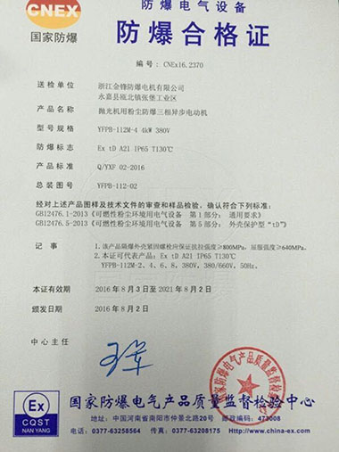 浙江金鋒防爆電機(jī)有限公司位于溫州三橋工業(yè)區(qū),是制造各類大、中、小型電機(jī)、