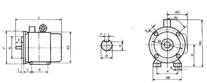 3 . B5 型電機(jī)座無底腳,端蓋上有凸緣,無尺寸 A 、 B 、 C 、 AB 。